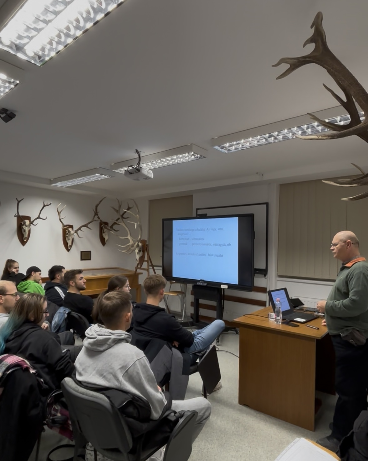 A félév első előadására Dr. Molnár Lajos érkezett el hozzánk, aki a vadhús idegen anyag tartalmát, anatómiai jellemzői által megkívánt felhasználását, jelenlegi magyar fogyasztásra való kitekintését és még sok érdekességet mesélt el nekünk. Az előadáson 50 fő vett részt.